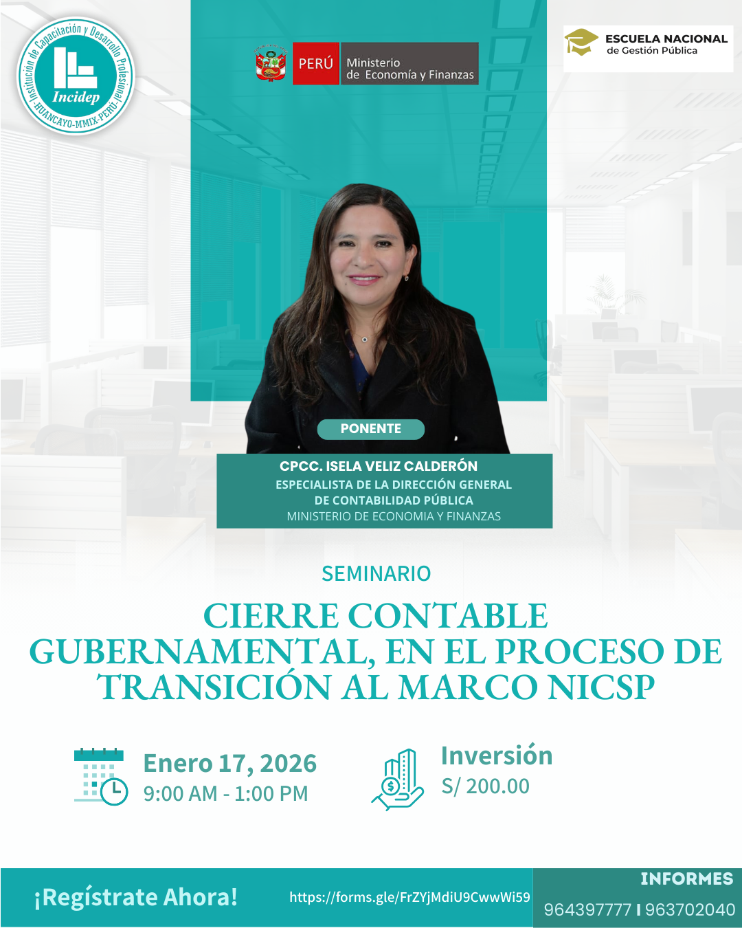 17/01 Prolg. Rosemberg 240 - El Tambo 17/01/2026 09:00 AM Cierre Contable Gubernamental, en el Proceso de Transición al Marco NICSP Inscríbase Ahora